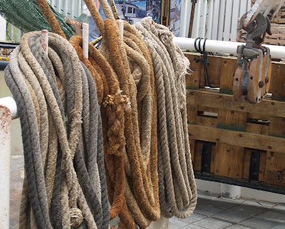 There was nothing more important to do after breakfast than to begin our preparations for lunch, and no better way to do that than to find some deck chairs in the shade and read our books. Shade has a way of moving, though, so before too long we had to abandon that pursuit in favor of some indoor sport. Which in this case was to be found in the casino. While my personal cruise director was burning through our liquid assets at the prodigious rate of $.18 per pull at the slot machines, I was enjoying a more cerebral game of Jacks or Better video poker. She quit after losing a little more than $6.00 of her $10.00 stipend, while I increased my investment by 2.5% on the strength of a three of a kind.